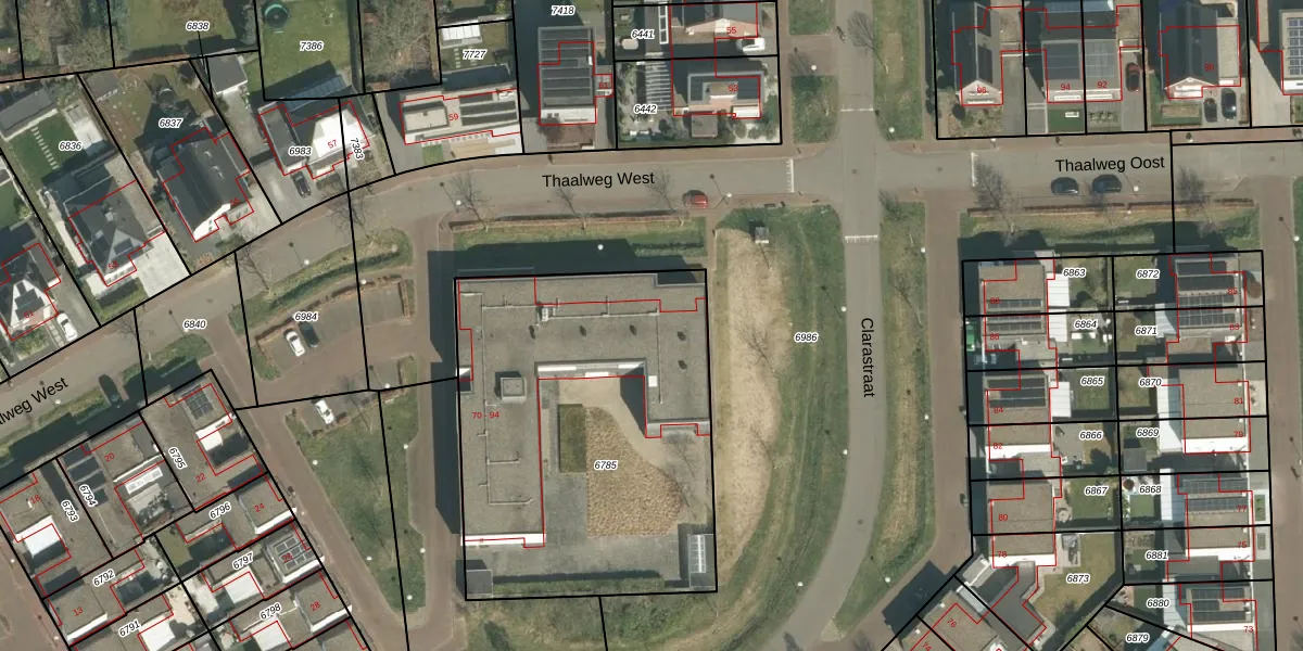 Thaalweg West 72 is gelegen op kadastraal perceel ECH00K6785. Deze kadastrale aanduiding is uniek en wordt gebruikt door het Kadaster om eigendomsrechten en andere zakelijke rechten vast te leggen. Het perceel maakt onderdeel uit van de kadastrale gemeente Echt.