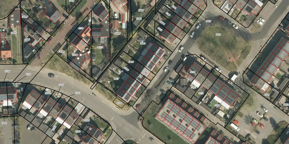 Theresiastraat 27 is gelegen op kadastraal perceel ECH00K5826. Deze kadastrale aanduiding is uniek en wordt gebruikt door het Kadaster om eigendomsrechten en andere zakelijke rechten vast te leggen. Het perceel maakt onderdeel uit van de kadastrale gemeente Echt.