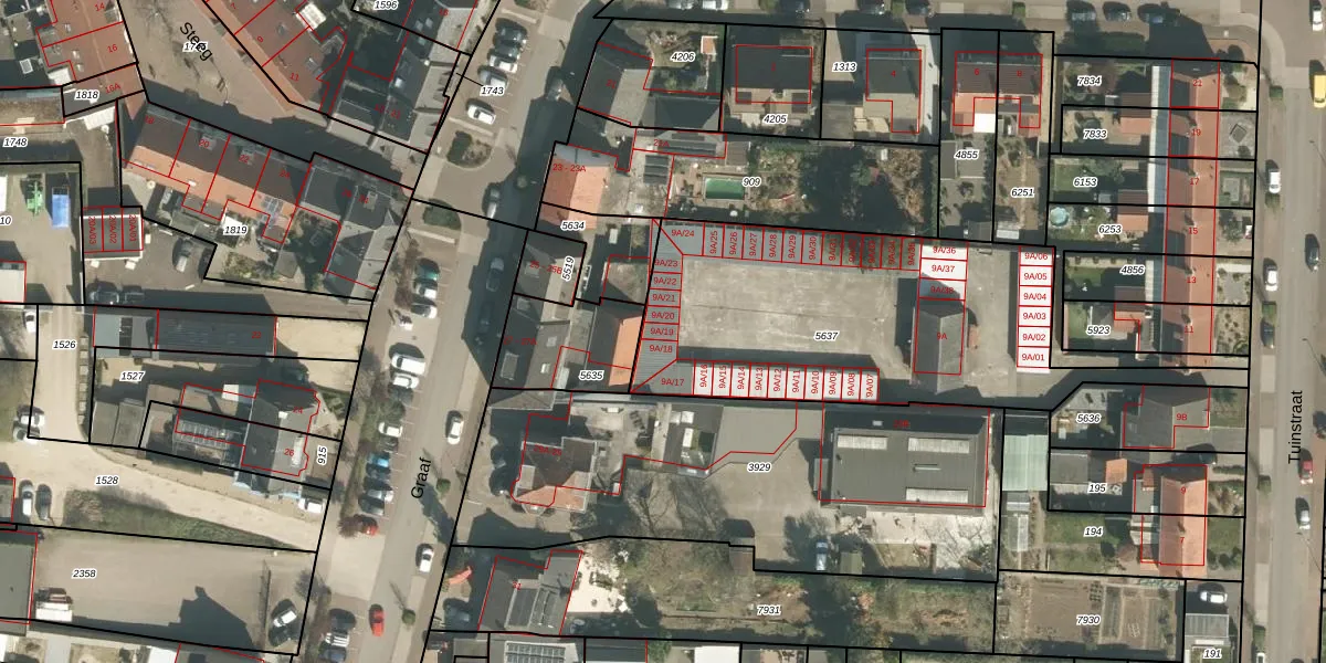 Het perceel waarop Tuinstraat 9-A-19 staat heeft een oppervlakte van 1683 m². Dit is een zeer groot perceel. De perceeloppervlakte wordt geregistreerd door het Kadaster. Gedetailleerde informatie over de maten van dit perceel kunt u vinden in het rapport Kadastrale kaart met maatvoering van Tuinstraat 9-A-19.