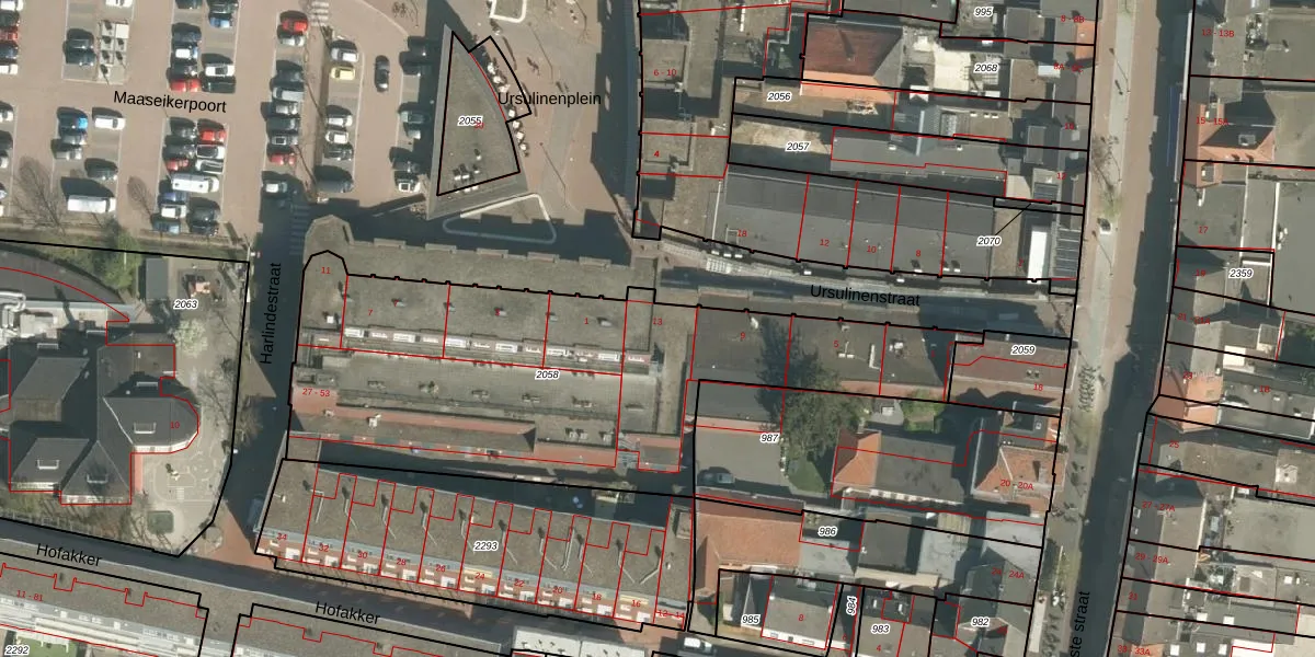 Ursulinenstraat 13 is gelegen op kadastraal perceel ECH00M2058. Deze kadastrale aanduiding is uniek en wordt gebruikt door het Kadaster om eigendomsrechten en andere zakelijke rechten vast te leggen. Het perceel maakt onderdeel uit van de kadastrale gemeente Echt.