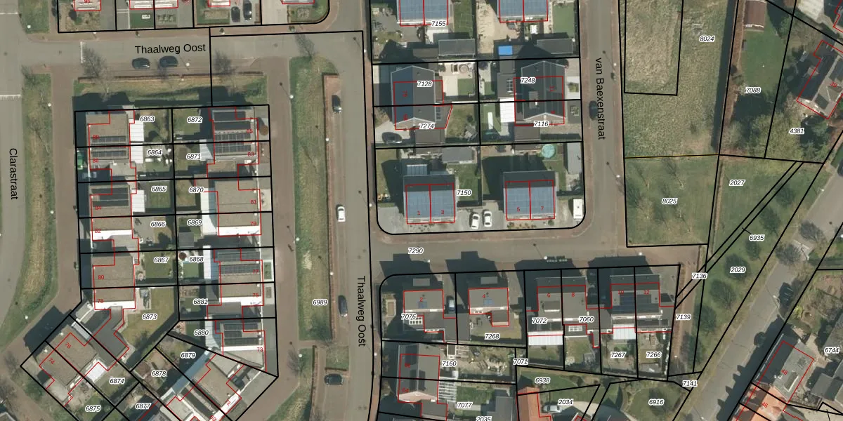 van Baexenstraat 1 is gelegen op kadastraal perceel ECH00K7150. Deze kadastrale aanduiding is uniek en wordt gebruikt door het Kadaster om eigendomsrechten en andere zakelijke rechten vast te leggen. Het perceel maakt onderdeel uit van de kadastrale gemeente Echt.