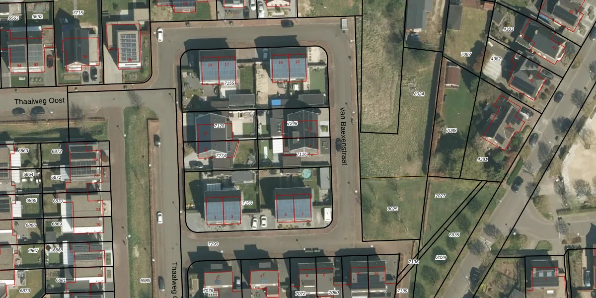 van Baexenstraat 9 is gelegen op kadastraal perceel ECH00K7116. Deze kadastrale aanduiding is uniek en wordt gebruikt door het Kadaster om eigendomsrechten en andere zakelijke rechten vast te leggen. Het perceel maakt onderdeel uit van de kadastrale gemeente Echt.