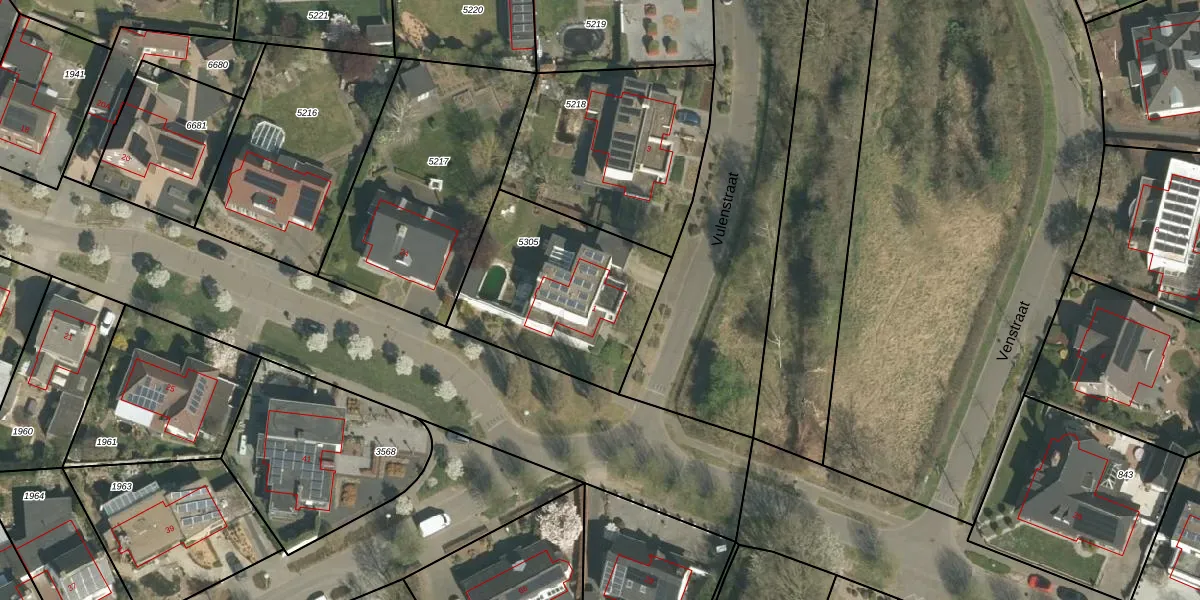 Het perceel waarop Vulenstraat 1 staat heeft een oppervlakte van 760 m². Dit is een groot perceel. De perceeloppervlakte wordt geregistreerd door het Kadaster. Gedetailleerde informatie over de maten van dit perceel kunt u vinden in het rapport Kadastrale kaart met maatvoering van Vulenstraat 1.