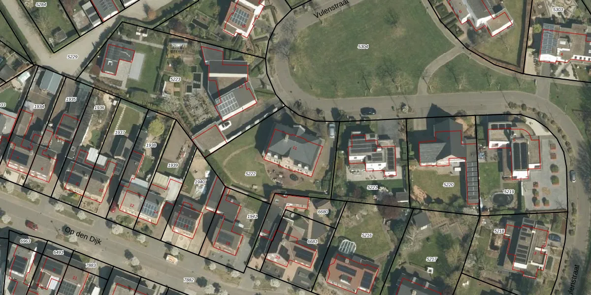 Het perceel waarop Vulenstraat 11 staat heeft een oppervlakte van 990 m². Dit is een groot perceel. De perceeloppervlakte wordt geregistreerd door het Kadaster. Gedetailleerde informatie over de maten van dit perceel kunt u vinden in het rapport Kadastrale kaart met maatvoering van Vulenstraat 11.