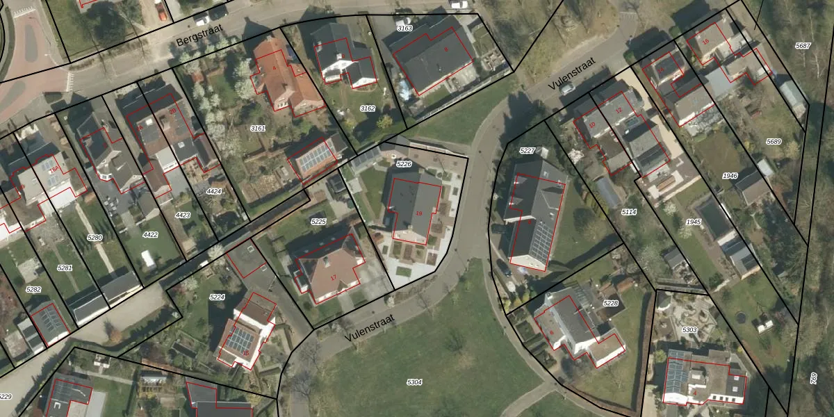 Vulenstraat 19 is gelegen op kadastraal perceel ECH00K5226. Deze kadastrale aanduiding is uniek en wordt gebruikt door het Kadaster om eigendomsrechten en andere zakelijke rechten vast te leggen. Het perceel maakt onderdeel uit van de kadastrale gemeente Echt.