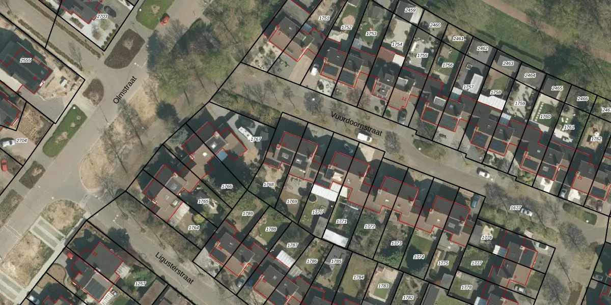 Gebruik de zoekbalk of klik op een perceel voor informatie over de adressen binnen dit perceel.
