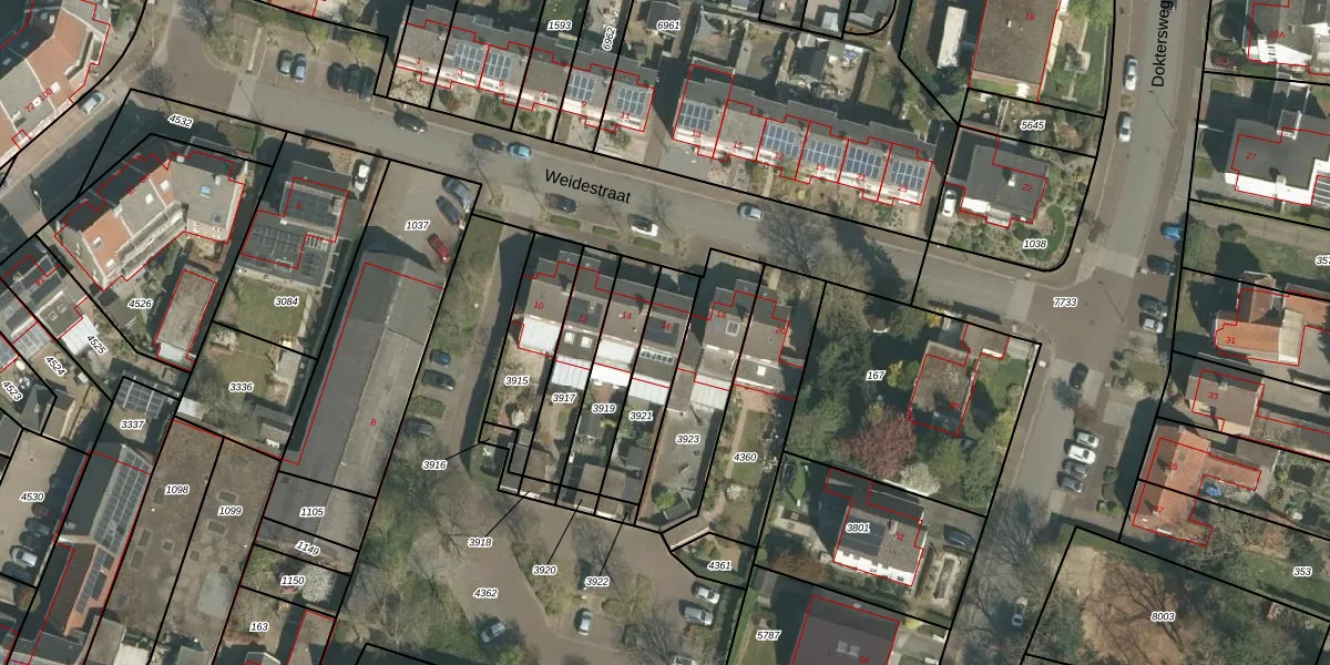 Het perceel waarop Weidestraat 16 staat heeft een oppervlakte van 226 m². Dit is een middelgroot perceel. De perceeloppervlakte wordt geregistreerd door het Kadaster. Gedetailleerde informatie over de maten van dit perceel kunt u vinden in het rapport Kadastrale kaart met maatvoering van Weidestraat 16.