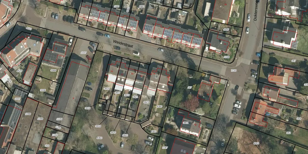 Het perceel waarop Weidestraat 18 staat heeft een oppervlakte van 367 m². Dit is een groot perceel. De perceeloppervlakte wordt geregistreerd door het Kadaster. Gedetailleerde informatie over de maten van dit perceel kunt u vinden in het rapport Kadastrale kaart met maatvoering van Weidestraat 18.