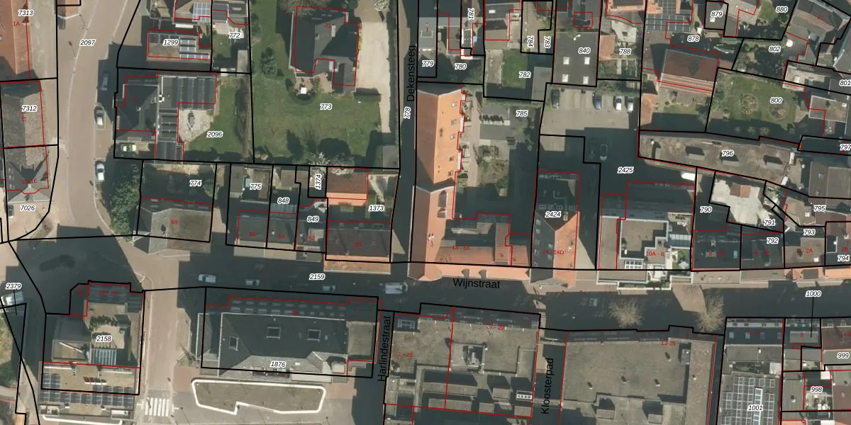 Het perceel waarop Wijnstraat 22 staat heeft een oppervlakte van 1215 m². Dit is een zeer groot perceel. De perceeloppervlakte wordt geregistreerd door het Kadaster. Gedetailleerde informatie over de maten van dit perceel kunt u vinden in het rapport Kadastrale kaart met maatvoering van Wijnstraat 22.