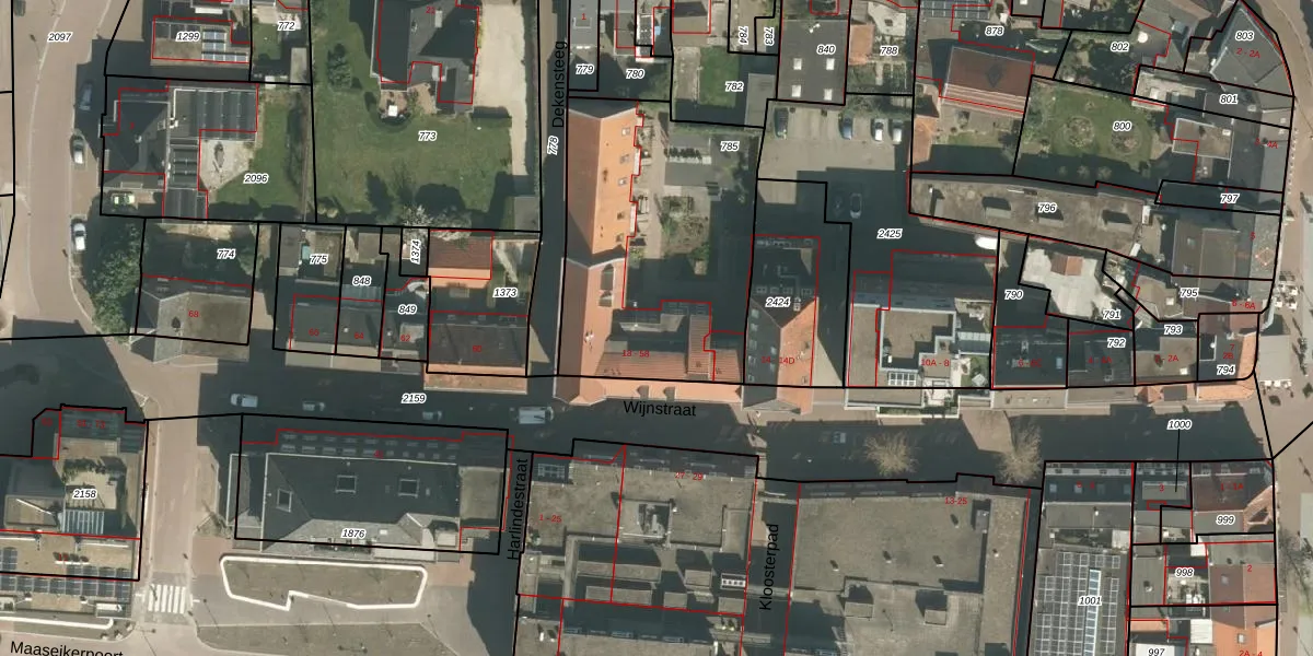 Wijnstraat 56 is gelegen op kadastraal perceel ECH00M785. Deze kadastrale aanduiding is uniek en wordt gebruikt door het Kadaster om eigendomsrechten en andere zakelijke rechten vast te leggen. Het perceel maakt onderdeel uit van de kadastrale gemeente Echt.