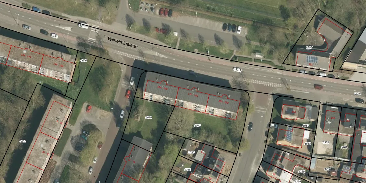 Het perceel waarop Wilhelminalaan 170-A staat heeft een oppervlakte van 1655 m². Dit is een zeer groot perceel. De perceeloppervlakte wordt geregistreerd door het Kadaster. Gedetailleerde informatie over de maten van dit perceel kunt u vinden in het rapport Kadastrale kaart met maatvoering van Wilhelminalaan 170-A.