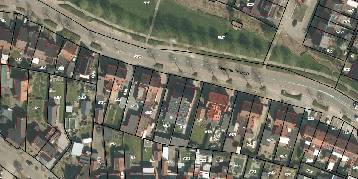 Het perceel waarop Wilhelminalaan 18 staat heeft een oppervlakte van 382 m². Dit is een groot perceel. De perceeloppervlakte wordt geregistreerd door het Kadaster. Gedetailleerde informatie over de maten van dit perceel kunt u vinden in het rapport Kadastrale kaart met maatvoering van Wilhelminalaan 18.