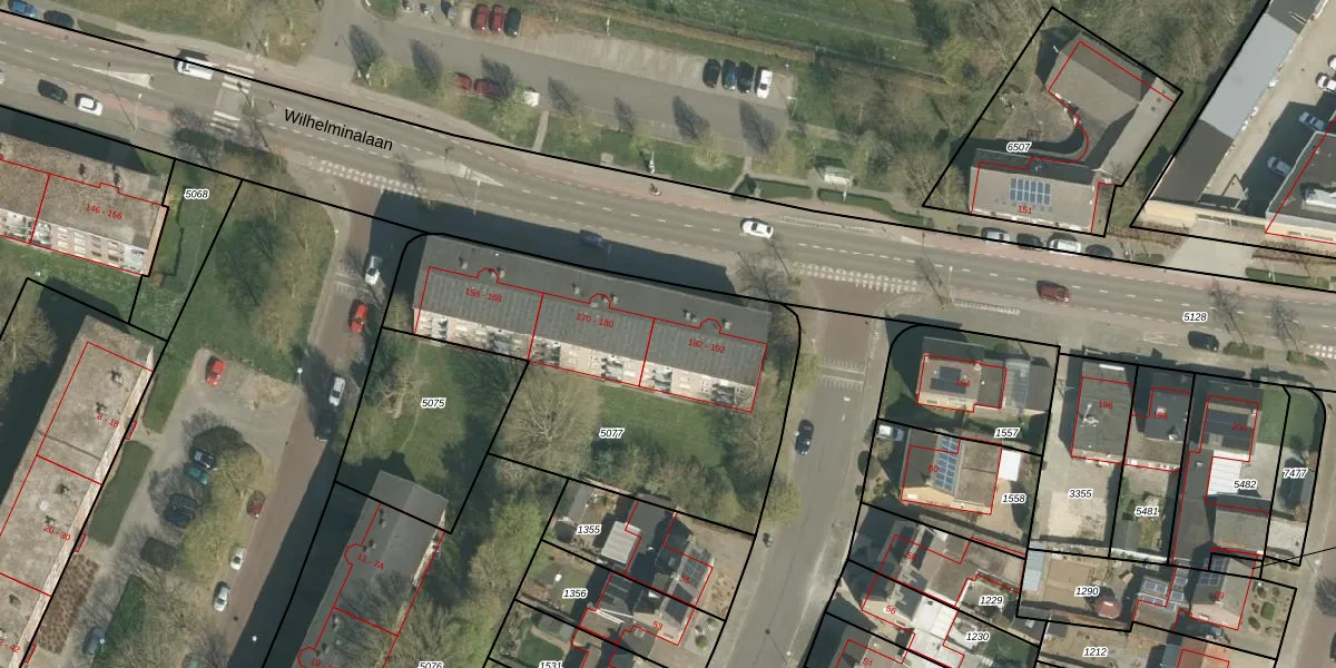 Het perceel waarop Wilhelminalaan 182-A staat heeft een oppervlakte van 1655 m². Dit is een zeer groot perceel. De perceeloppervlakte wordt geregistreerd door het Kadaster. Gedetailleerde informatie over de maten van dit perceel kunt u vinden in het rapport Kadastrale kaart met maatvoering van Wilhelminalaan 182-A.