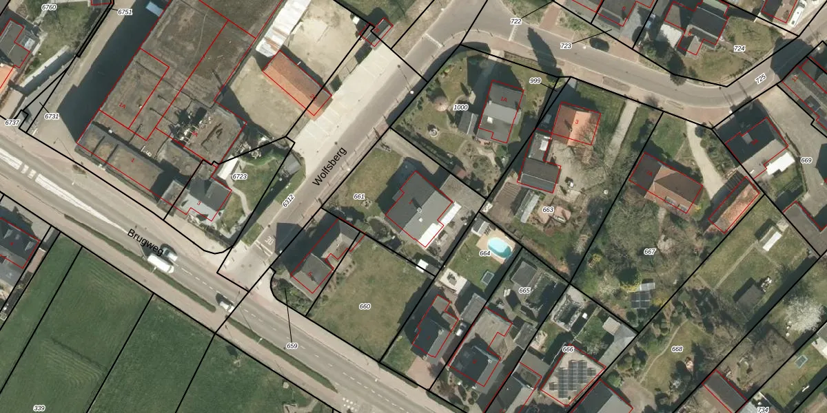 Het perceel waarop Wolfsberg 1 staat heeft een oppervlakte van 735 m². Dit is een groot perceel. De perceeloppervlakte wordt geregistreerd door het Kadaster. Gedetailleerde informatie over de maten van dit perceel kunt u vinden in het rapport Kadastrale kaart met maatvoering van Wolfsberg 1.
