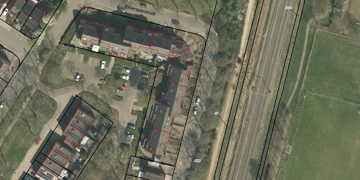 Zilversparstraat 57 is gelegen op kadastraal perceel ECH00K4103. Deze kadastrale aanduiding is uniek en wordt gebruikt door het Kadaster om eigendomsrechten en andere zakelijke rechten vast te leggen. Het perceel maakt onderdeel uit van de kadastrale gemeente Echt.