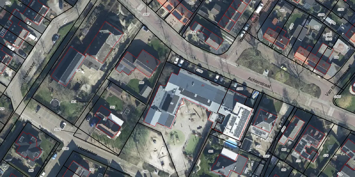 Het perceel waarop Achterstraat 27 staat heeft een oppervlakte van 1795 m². Dit is een zeer groot perceel. De perceeloppervlakte wordt geregistreerd door het Kadaster. Gedetailleerde informatie over de maten van dit perceel kunt u vinden in het rapport Kadastrale kaart met maatvoering van Achterstraat 27.