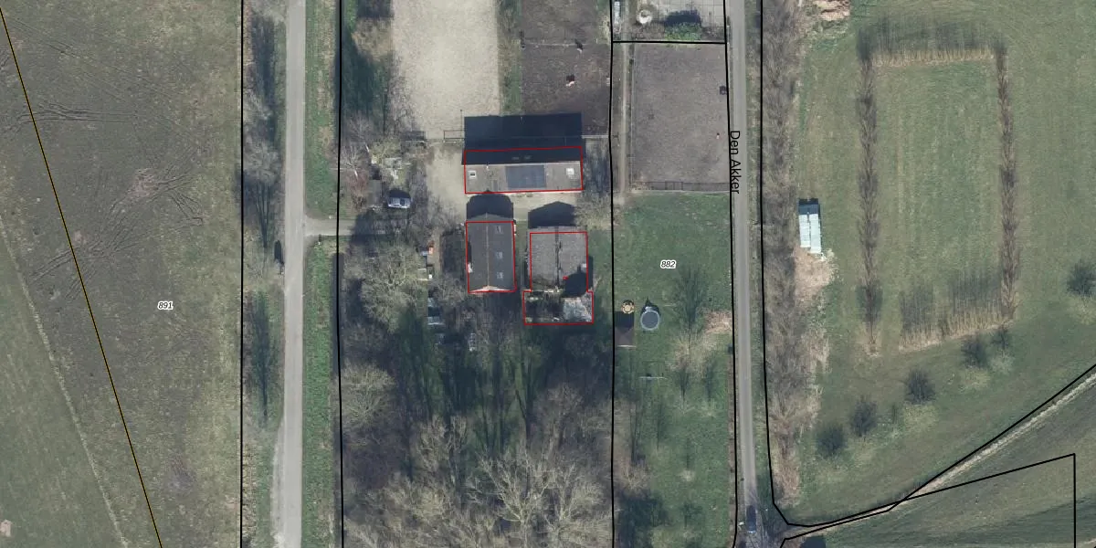 Het perceel waarop Den Akker 8 staat heeft een oppervlakte van 1,7 ha. Dit is een zeer groot perceel. De perceeloppervlakte wordt geregistreerd door het Kadaster. Gedetailleerde informatie over de maten van dit perceel kunt u vinden in het rapport Kadastrale kaart met maatvoering van Den Akker 8.