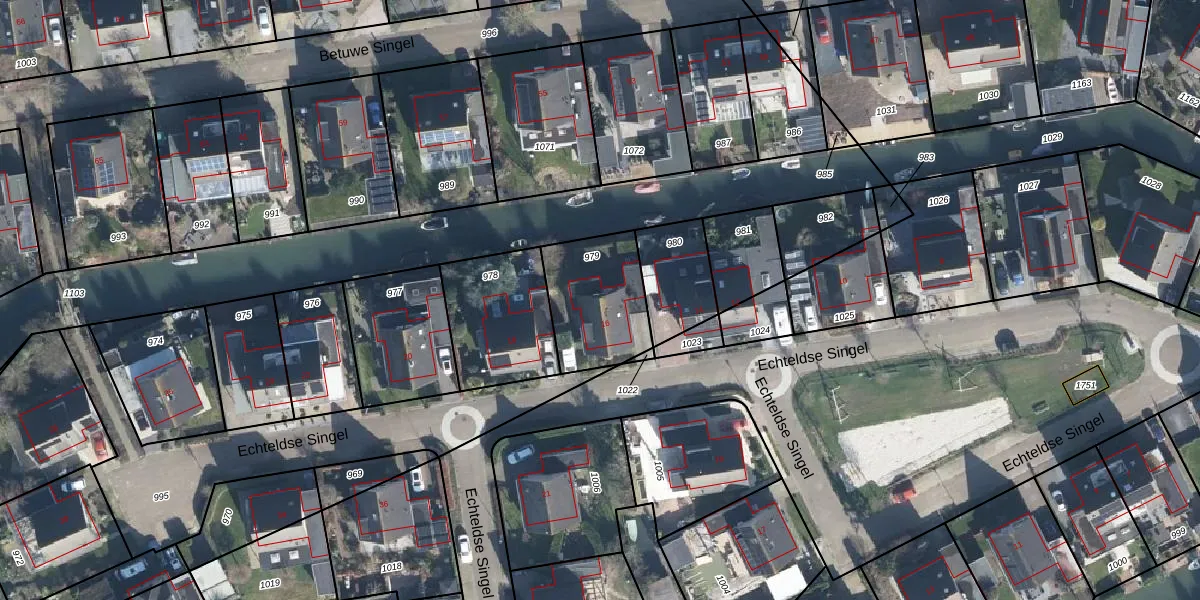 Het perceel waarop Echteldse Singel 16 staat heeft een oppervlakte van 339 m². Dit is een groot perceel. De perceeloppervlakte wordt geregistreerd door het Kadaster. Gedetailleerde informatie over de maten van dit perceel kunt u vinden in het rapport Kadastrale kaart met maatvoering van Echteldse Singel 16.