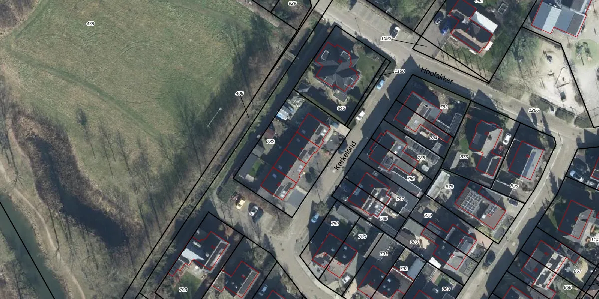 Het perceel waarop Kerkeland 6 staat heeft een oppervlakte van 851 m². Dit is een groot perceel. De perceeloppervlakte wordt geregistreerd door het Kadaster. Gedetailleerde informatie over de maten van dit perceel kunt u vinden in het rapport Kadastrale kaart met maatvoering van Kerkeland 6.
