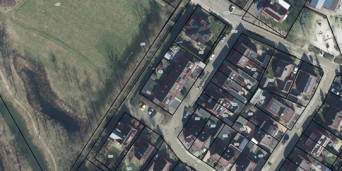 Het perceel waarop Kerkeland 8 staat heeft een oppervlakte van 851 m². Dit is een groot perceel. De perceeloppervlakte wordt geregistreerd door het Kadaster. Gedetailleerde informatie over de maten van dit perceel kunt u vinden in het rapport Kadastrale kaart met maatvoering van Kerkeland 8.