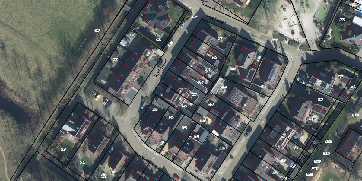 Het perceel waarop Kerkeland 9 staat heeft een oppervlakte van 200 m². Dit is een middelgroot perceel. De perceeloppervlakte wordt geregistreerd door het Kadaster. Gedetailleerde informatie over de maten van dit perceel kunt u vinden in het rapport Kadastrale kaart met maatvoering van Kerkeland 9.