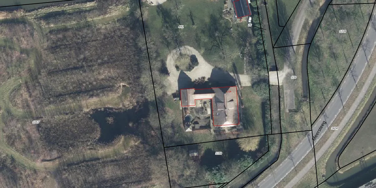 Het perceel waarop Meersteeg 1-a staat heeft een oppervlakte van 5200 m². Dit is een zeer groot perceel. De perceeloppervlakte wordt geregistreerd door het Kadaster. Gedetailleerde informatie over de maten van dit perceel kunt u vinden in het rapport Kadastrale kaart met maatvoering van Meersteeg 1-a.