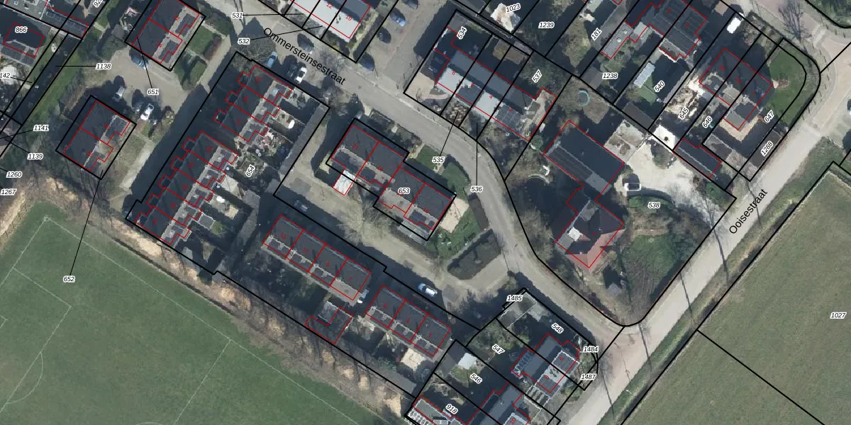 Het perceel waarop Ommersteinsestraat 15 staat heeft een oppervlakte van 379 m². Dit is een groot perceel. De perceeloppervlakte wordt geregistreerd door het Kadaster. Gedetailleerde informatie over de maten van dit perceel kunt u vinden in het rapport Kadastrale kaart met maatvoering van Ommersteinsestraat 15.