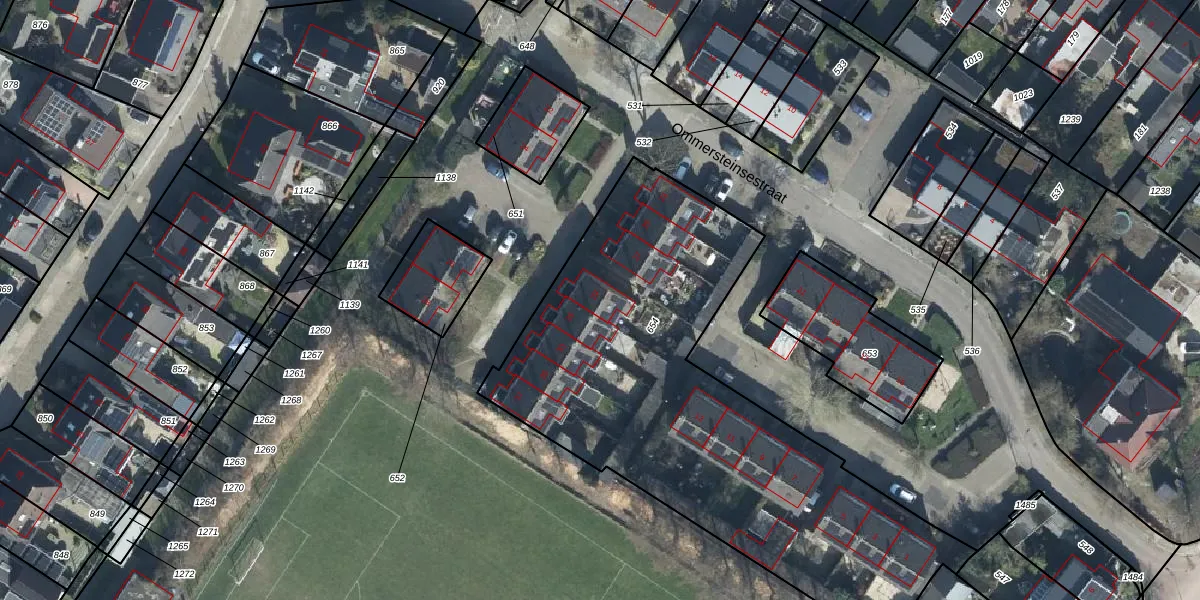 Het perceel waarop Ommersteinsestraat 29 staat heeft een oppervlakte van 2460 m². Dit is een zeer groot perceel. De perceeloppervlakte wordt geregistreerd door het Kadaster. Gedetailleerde informatie over de maten van dit perceel kunt u vinden in het rapport Kadastrale kaart met maatvoering van Ommersteinsestraat 29.