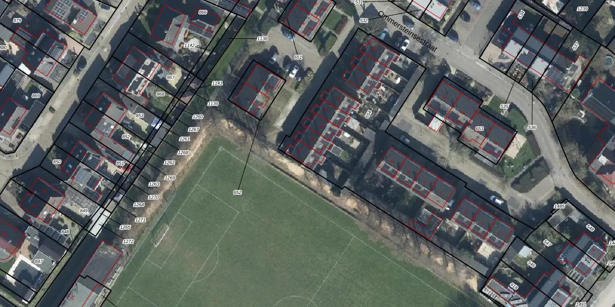 Het perceel waarop Ommersteinsestraat 37 staat heeft een oppervlakte van 2460 m². Dit is een zeer groot perceel. De perceeloppervlakte wordt geregistreerd door het Kadaster. Gedetailleerde informatie over de maten van dit perceel kunt u vinden in het rapport Kadastrale kaart met maatvoering van Ommersteinsestraat 37.