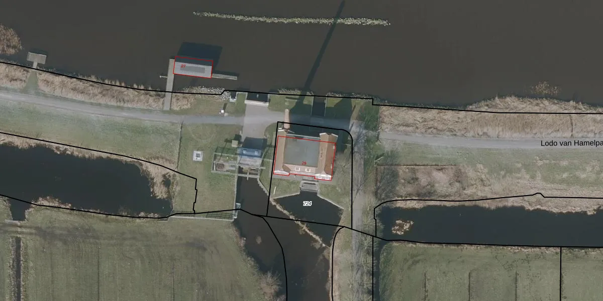 Het perceel waarop het adres ligt is OTZ00-L-724. De afkorting 'OTZ00' staat voor kadastrale gemeente Oosterzee. De gemiddelde perceelgrootte in Oosterzee is 1,7 ha. Dit perceel is kleiner: de perceeloppervlakte bedraagt 845 m². Het kleinste perceel in de kadastrale gemeente is 0 m² groot. De grootste perceeloppervlakte is 6,33 km². Dit is het enige adres dat aanwezig is op het perceel. De huidige grenzen van het perceel zijn digitaal in de Basisregistratie Kadaster (BRK) geregistreerd op 21-10-2008.