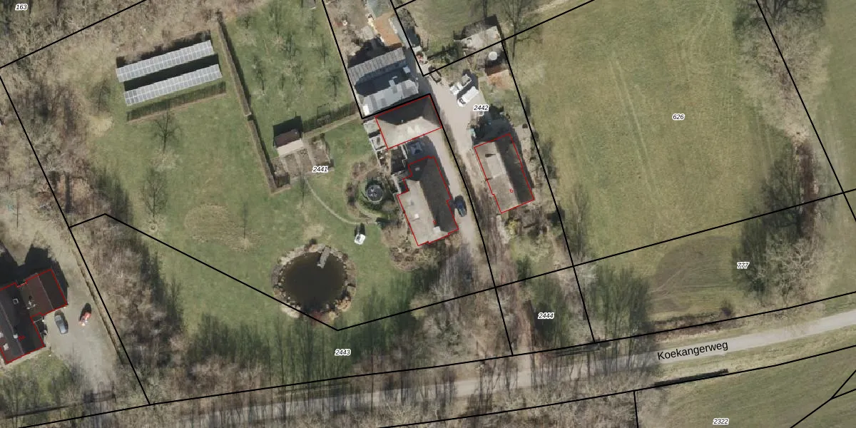 Het perceel waarop Koekangerweg 8 staat heeft een oppervlakte van 6225 m². Dit is een zeer groot perceel. De perceeloppervlakte wordt geregistreerd door het Kadaster. Gedetailleerde informatie over de maten van dit perceel kunt u vinden in het rapport Kadastrale kaart met maatvoering van Koekangerweg 8.