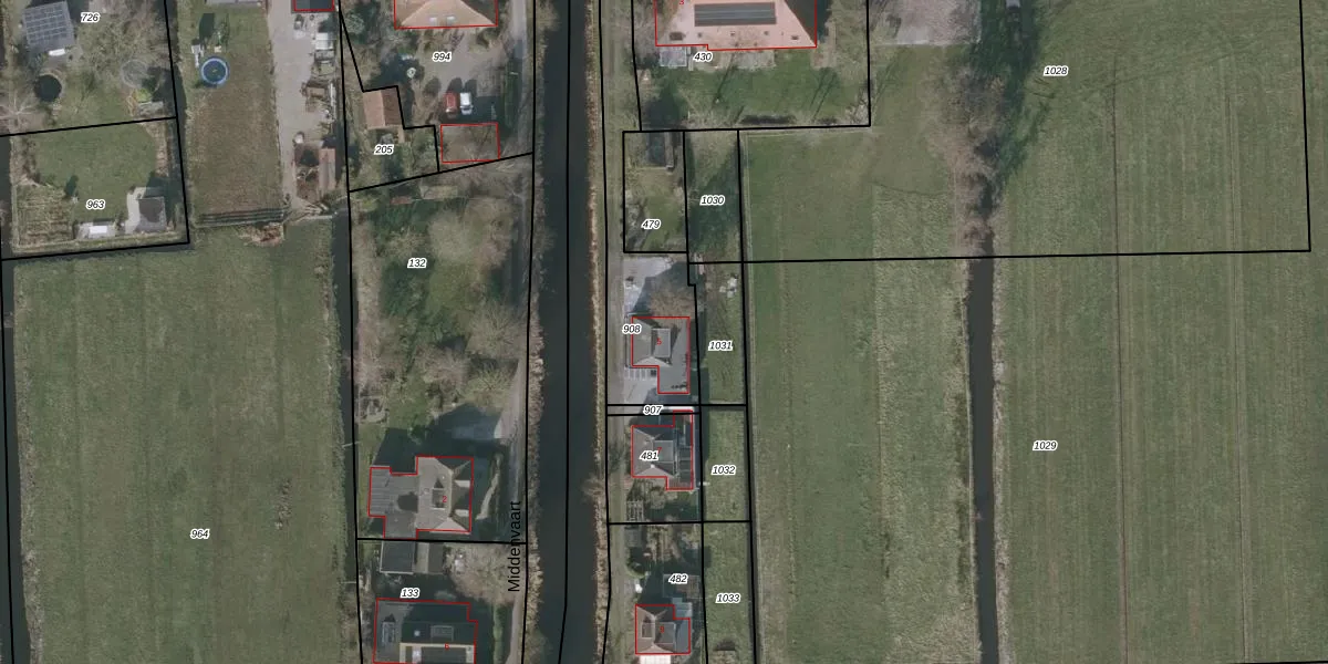 Middenvaart 5 is gelegen op kadastraal perceel OTZ00L908. Deze kadastrale aanduiding is uniek en wordt gebruikt door het Kadaster om eigendomsrechten en andere zakelijke rechten vast te leggen. Het perceel maakt onderdeel uit van de kadastrale gemeente Oosterzee.