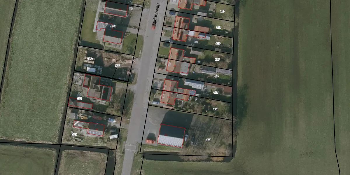 Middenweg 17 is gelegen op kadastraal perceel OTZ00L822. Deze kadastrale aanduiding is uniek en wordt gebruikt door het Kadaster om eigendomsrechten en andere zakelijke rechten vast te leggen. Het perceel maakt onderdeel uit van de kadastrale gemeente Oosterzee.