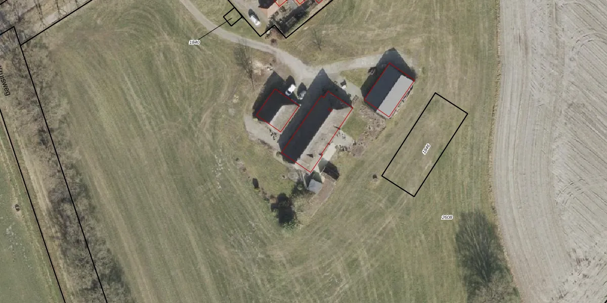 Het adres ligt op het perceel RNN02-F-2608, dat zich in de kadastrale gemeente Ruinen bevindt. De oppervlakte van het perceel is 4,9 ha. Dat is groter dan gemiddeld in Ruinen, waar de gemiddelde perceeloppervlakte op 1,2 ha ligt. De grootste perceeloppervlakte in de kadastrale gemeente is 2,67 km². De kleinste oppervlakte bedraagt 0 m². Op het perceel bevinden zich geen andere adressen. In de Basisregistratie Kadaster (BRK) werden de grenzen van het perceel geregistreerd op 06-11-2013.
