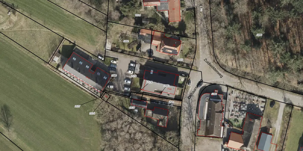 Oshaarseweg 2-a is gelegen op kadastraal perceel RNN02F2576. Deze kadastrale aanduiding is uniek en wordt gebruikt door het Kadaster om eigendomsrechten en andere zakelijke rechten vast te leggen. Het perceel maakt onderdeel uit van de kadastrale gemeente Ruinen.