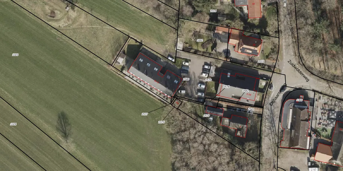 Oshaarseweg 2-e is gelegen op kadastraal perceel RNN02F2576. Deze kadastrale aanduiding is uniek en wordt gebruikt door het Kadaster om eigendomsrechten en andere zakelijke rechten vast te leggen. Het perceel maakt onderdeel uit van de kadastrale gemeente Ruinen.