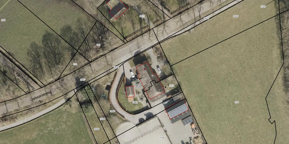 Oshaarseweg 7 is gelegen op kadastraal perceel RNN02F2661. Deze kadastrale aanduiding is uniek en wordt gebruikt door het Kadaster om eigendomsrechten en andere zakelijke rechten vast te leggen. Het perceel maakt onderdeel uit van de kadastrale gemeente Ruinen.