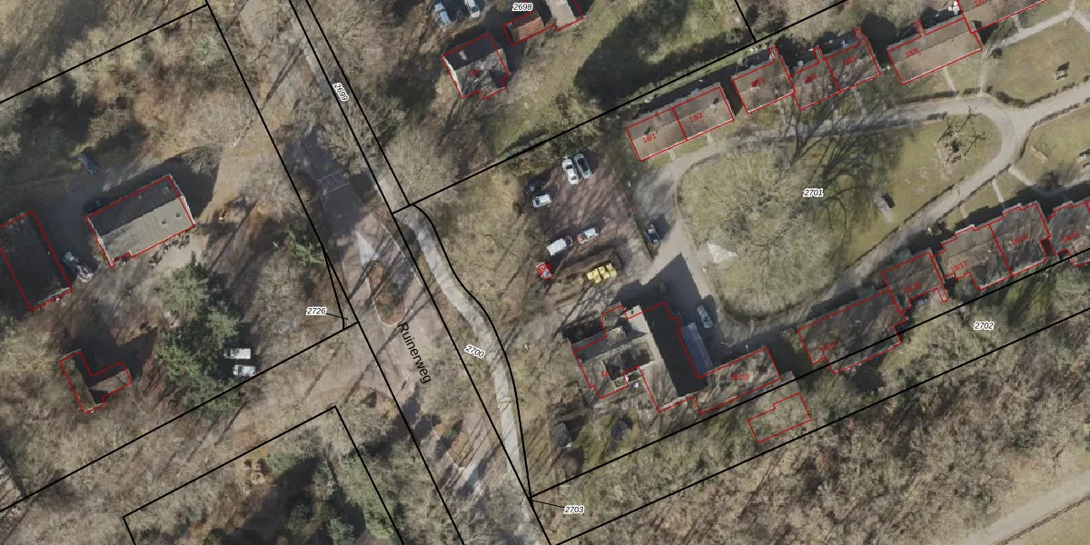 Het perceel waarop het adres ligt is RNN02-F-2701. De afkorting 'RNN02' staat voor kadastrale gemeente Ruinen. Het perceel is kleiner dan gemiddeld in Ruinen. Het perceel is 7827 m² groot, terwijl het gemiddelde ligt op 1,2 ha. De grootste perceeloppervlakte in de kadastrale gemeente is 2,67 km². De kleinste oppervlakte bedraagt 0 m². Op het perceel zijn 17 adressen aanwezig. In de Basisregistratie Kadaster (BRK) werden de grenzen van het perceel geregistreerd op 10-10-2022.