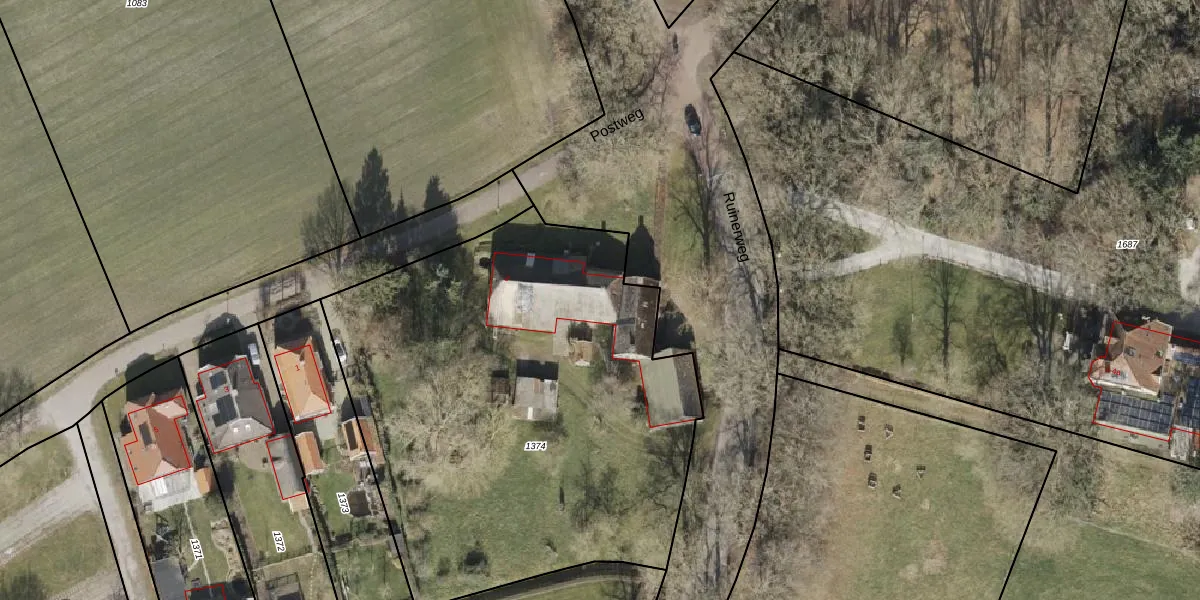 Het adres ligt op het perceel RNN02-F-1374, dat zich in de kadastrale gemeente Ruinen bevindt. Het perceel is 2640 m² groot. Dat is kleiner dan de gemiddelde perceeloppervlakte in Ruinen, dat op 1,2 ha ligt. De grootste perceeloppervlakte in de kadastrale gemeente is 2,67 km². De kleinste oppervlakte bedraagt 0 m². Dit is het enige adres dat aanwezig is op het perceel. De laatste wijziging in het de Basisregistratie Kadaster (BRK) was op 30-05-2001.