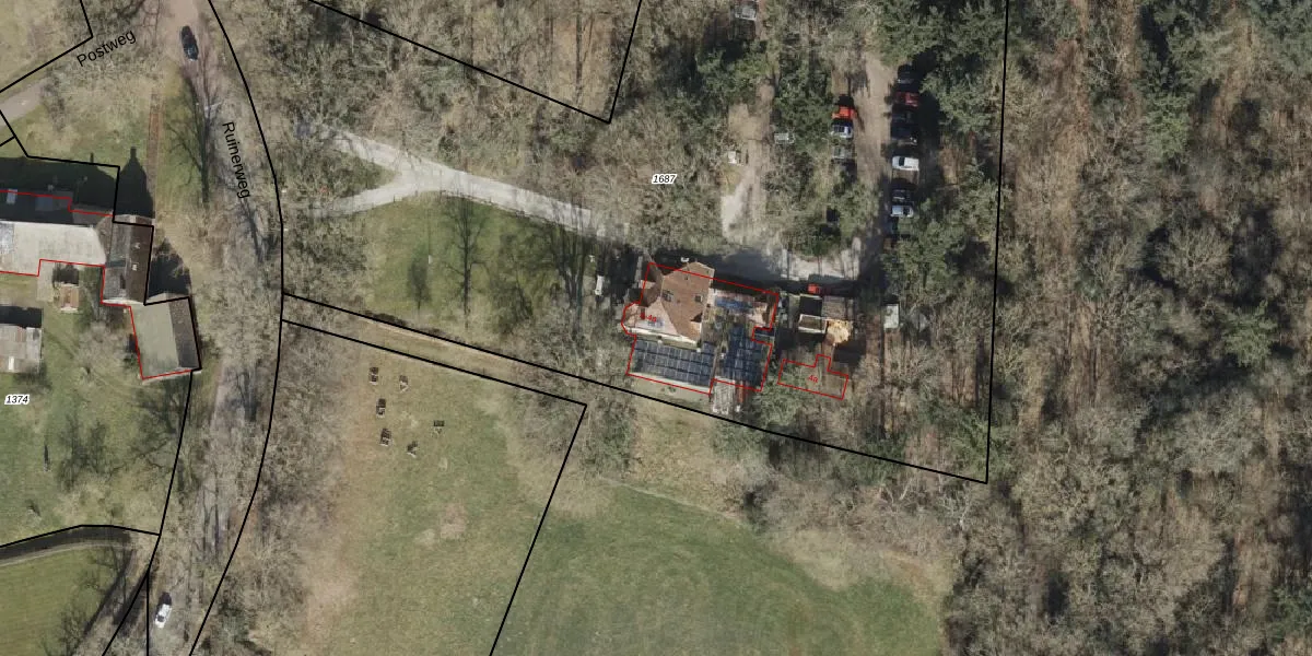 Het perceel waarop het adres ligt is RNN02-F-1687. De afkorting 'RNN02' staat voor kadastrale gemeente Ruinen. Het perceel is 6970 m² groot. Dat is kleiner dan de gemiddelde perceeloppervlakte in Ruinen, dat op 1,2 ha ligt. Het grootste perceel in de kadastrale gemeente is 2,67 km². Het kleinste perceel heeft een oppervlakte van 0 m². Op het perceel liggen in totaal 2 adressen. De laatste wijziging in het de Basisregistratie Kadaster (BRK) was op 30-05-2001.