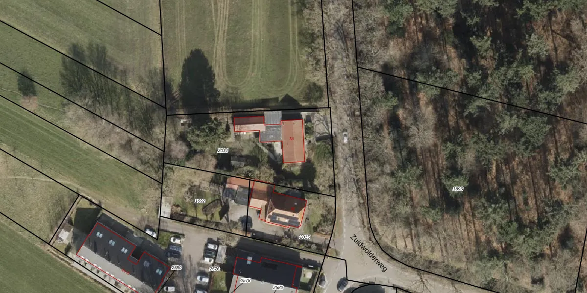 Zuidwolderweg 34 is gelegen op kadastraal perceel RNN02F2014. Deze kadastrale aanduiding is uniek en wordt gebruikt door het Kadaster om eigendomsrechten en andere zakelijke rechten vast te leggen. Het perceel maakt onderdeel uit van de kadastrale gemeente Ruinen.
