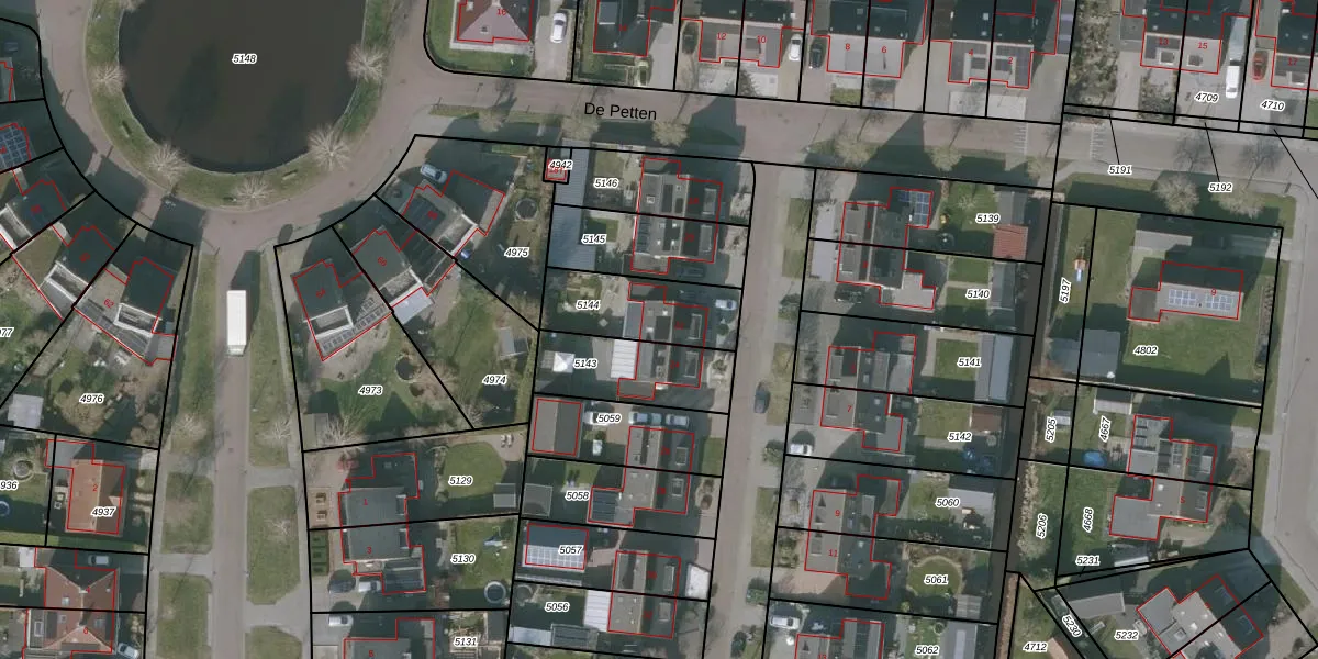 Gebruik de zoekbalk of klik op een perceel voor informatie over de adressen binnen dit perceel.