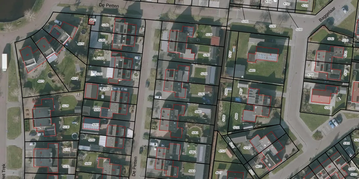 Het perceel waarop De Petten 7 staat heeft een oppervlakte van 393 m². Dit is een groot perceel. De perceeloppervlakte wordt geregistreerd door het Kadaster. Gedetailleerde informatie over de maten van dit perceel kunt u vinden in het rapport Kadastrale kaart met maatvoering van De Petten 7.