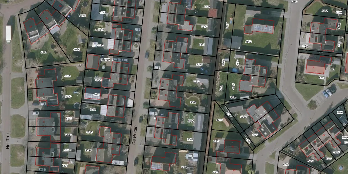 Het perceel waarop De Petten 9 staat heeft een oppervlakte van 389 m². Dit is een groot perceel. De perceeloppervlakte wordt geregistreerd door het Kadaster. Gedetailleerde informatie over de maten van dit perceel kunt u vinden in het rapport Kadastrale kaart met maatvoering van De Petten 9.