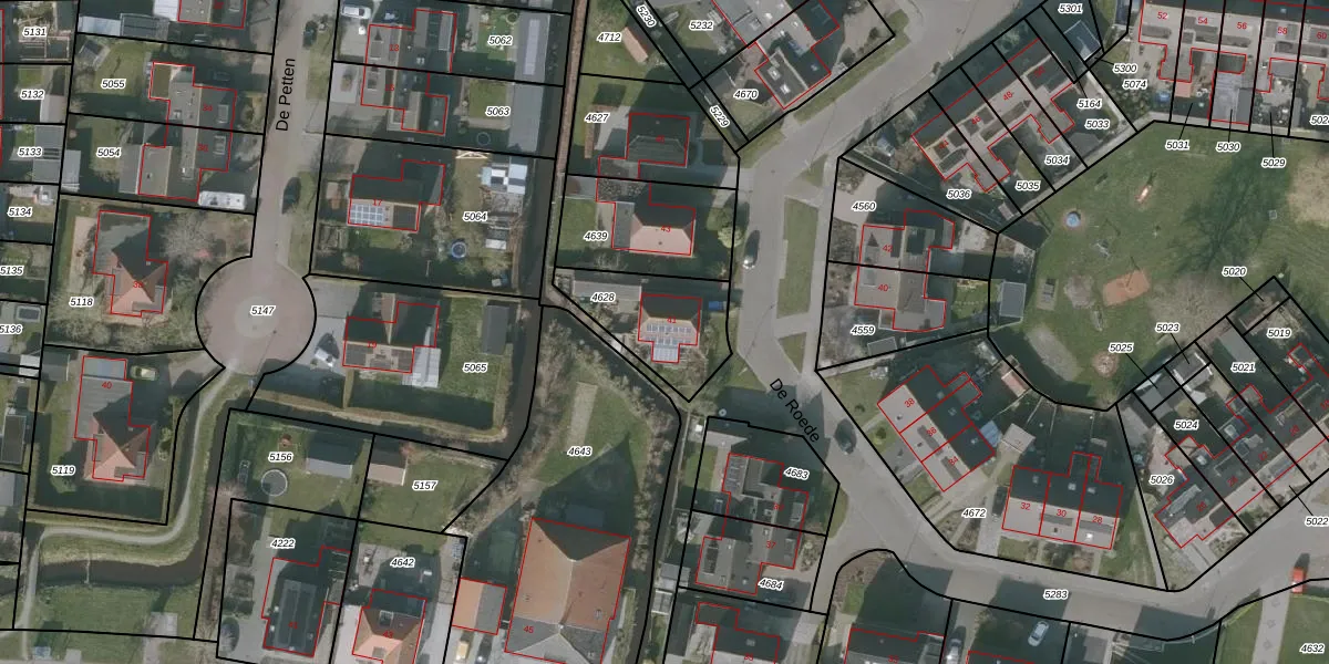 Gebruik de zoekbalk of klik op een perceel voor informatie over de adressen binnen dit perceel.