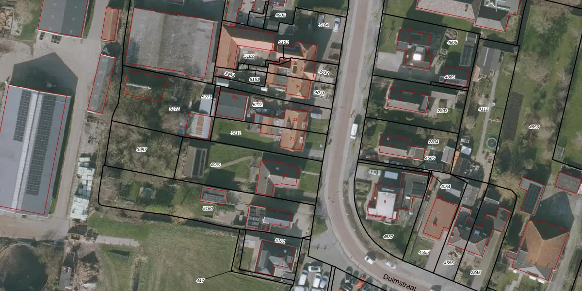 Duimstraat 21 is gelegen op kadastraal perceel OTZ00B5211. Deze kadastrale aanduiding is uniek en wordt gebruikt door het Kadaster om eigendomsrechten en andere zakelijke rechten vast te leggen. Het perceel maakt onderdeel uit van de kadastrale gemeente Oosterzee.