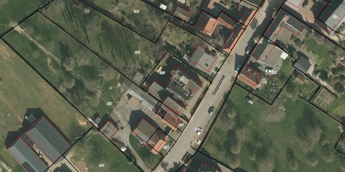 Dorpsstraat 13-A is gelegen op kadastraal perceel MGT02R297. Deze kadastrale aanduiding is uniek en wordt gebruikt door het Kadaster om eigendomsrechten en andere zakelijke rechten vast te leggen. Het perceel maakt onderdeel uit van de kadastrale gemeente Margraten.