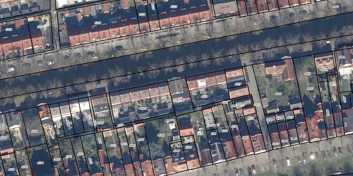 Het perceel waarop Achterhaven 23 staat heeft een oppervlakte van 202 m². Dit is een middelgroot perceel. De perceeloppervlakte wordt geregistreerd door het Kadaster. Gedetailleerde informatie over de maten van dit perceel kunt u vinden in het rapport Kadastrale kaart met maatvoering van Achterhaven 23.