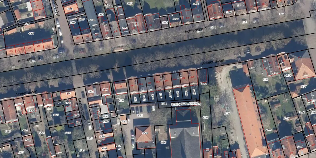 Het perceel waarop Achterhaven 65-e staat heeft een oppervlakte van 90 m². Dit is een klein perceel. De perceeloppervlakte wordt geregistreerd door het Kadaster. Gedetailleerde informatie over de maten van dit perceel kunt u vinden in het rapport Kadastrale kaart met maatvoering van Achterhaven 65-e.