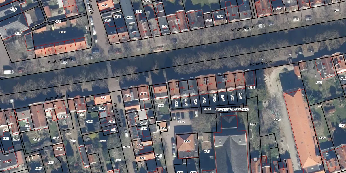 Het perceel waarop Achterhaven 65-h staat heeft een oppervlakte van 88 m². Dit is een klein perceel. De perceeloppervlakte wordt geregistreerd door het Kadaster. Gedetailleerde informatie over de maten van dit perceel kunt u vinden in het rapport Kadastrale kaart met maatvoering van Achterhaven 65-h.